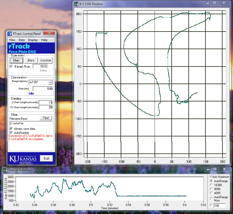 - The user interface for the Force Plate Actometer maps real-time position and total force for the user.