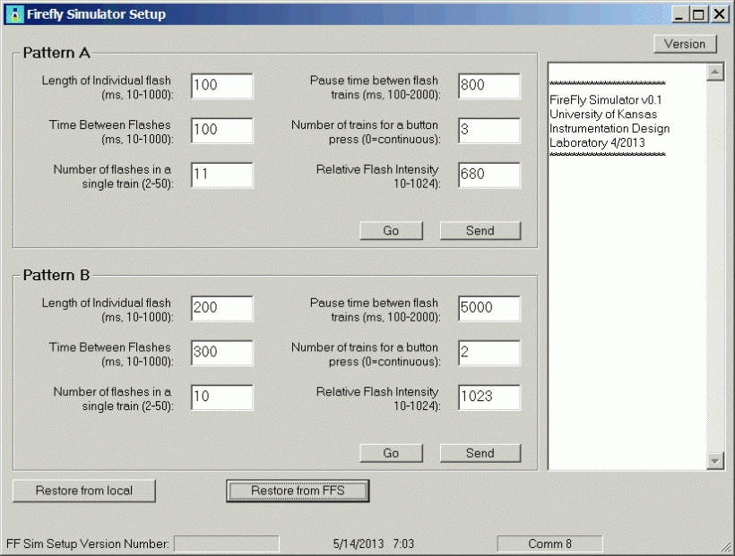 Firefly Simulator instrument. GUI for the Programmable Firefly Simulator.