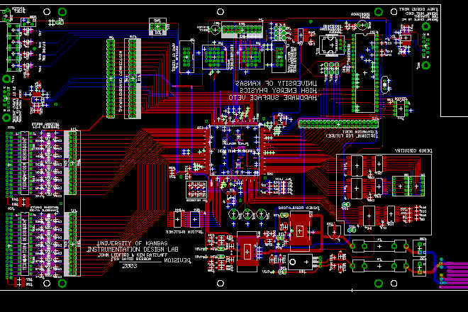 A portion of the Hardware Surface Veto printed circuit board layout. RICE HSV board.