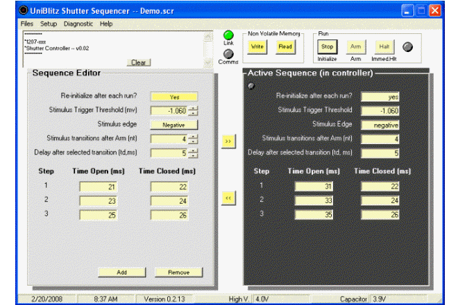 Control Panel for the Shutter Controller Shutter Timing Sequence
